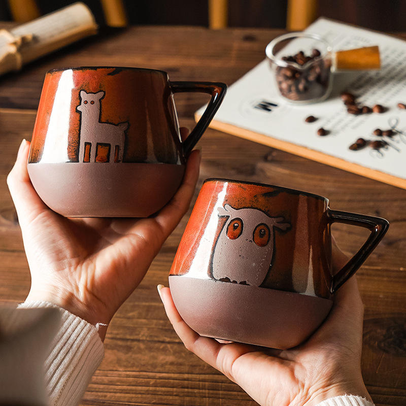 Nordic Hand Painted Ceramic Mug Cartoon Design With Handle Single Cup Gift For Coffee Tea Spring 2024