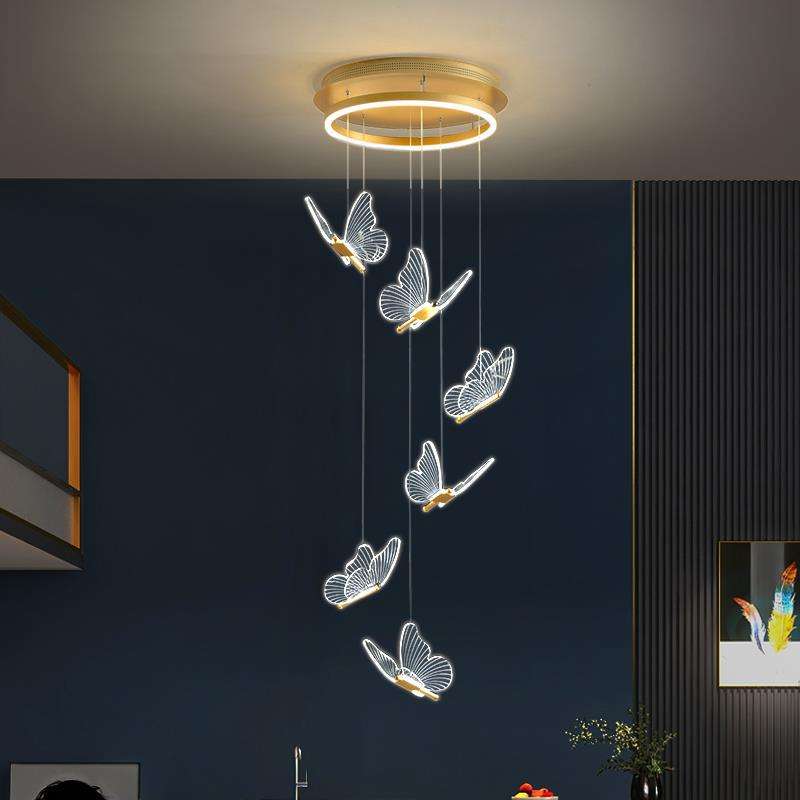 Nordic Industrial Butterfly Chandelier Stainless Steel K9 Crystal Creative for Restaurant Bedroom Bedside Duplex Window Coffee