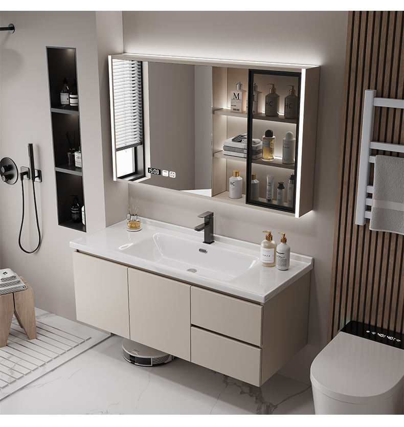 Nordic Light Luxury Bathroom Cabinet Combination Modern Simple Bathroom Ceramic Integrated Hand Wash Basin Washbasin Washbasin