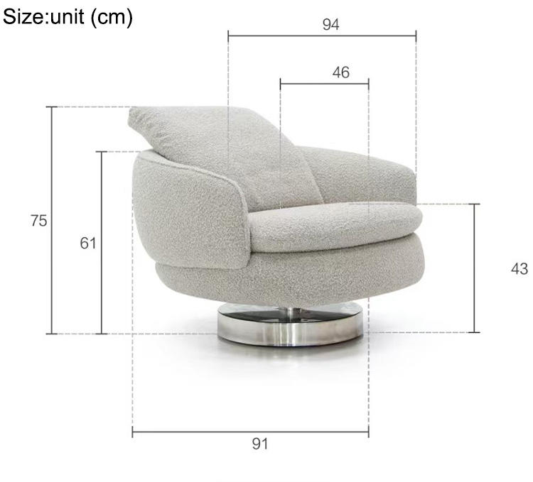 Nordic Light Luxury Single Sofa Round Rotating Chair Home Furniture Villa Living Room Velvet Fabric Swivel Armchair Lounge Chair