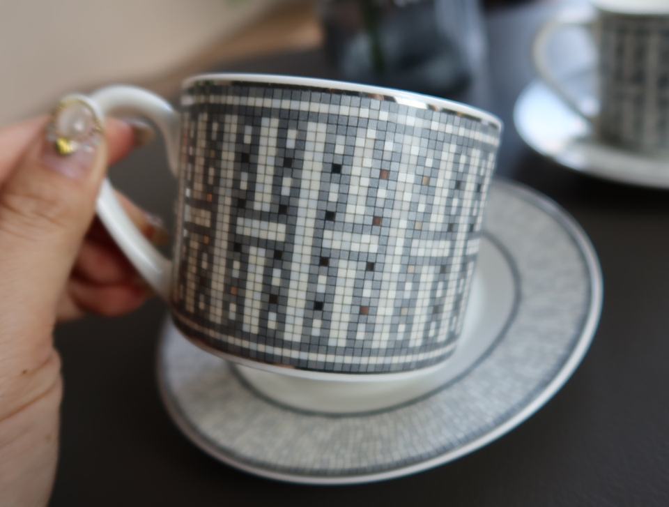 Nordic Luxury Grey Horse-drawn Carriage Bone China Coffee Cup Saucer Set with Gift Box Drinkware