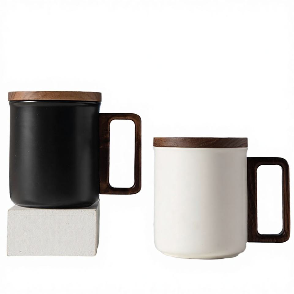 Nordic Minimalist Matte Black White Porcelain Coffee Mug Custom Printed Logo BPA Free Microwave Safe Large Capacity Dishwasher