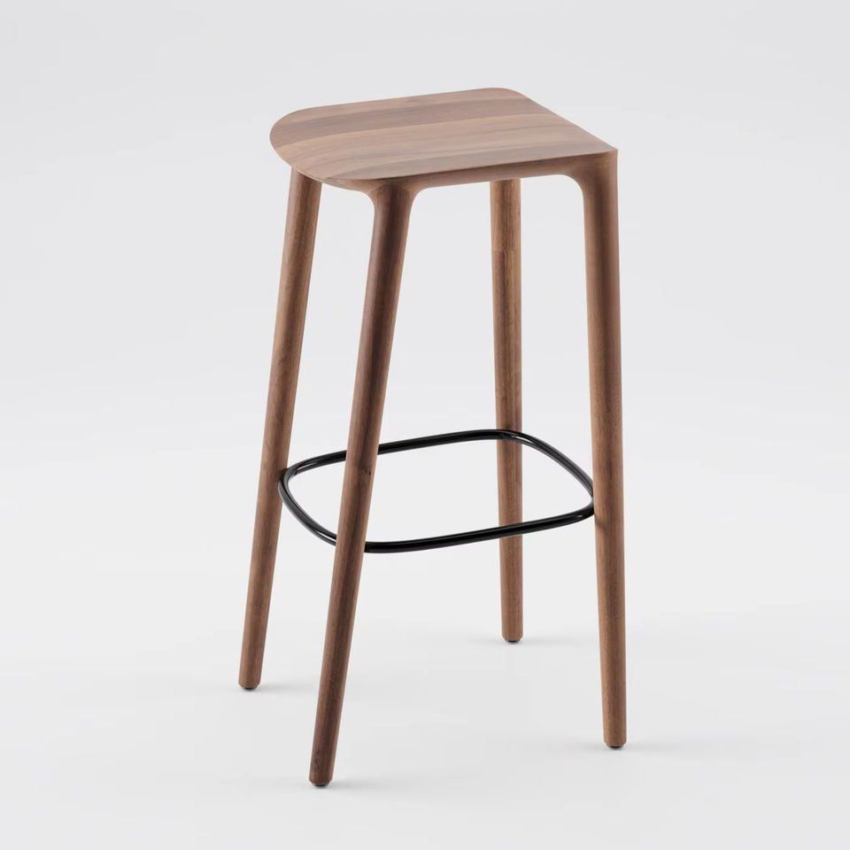 Nordic Modern Style Solid Wood High Chair with Soft Bag Black Pedal Stools Dining Living Room Application Without Backseat