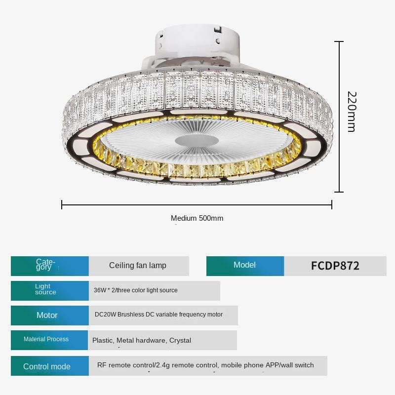 Nordic Modern LED Crystal Ceiling Chandelier Ultra-Thin 5 Luxury Glass with Remote Control DC/AC Motor for Living Room & Bedroom
