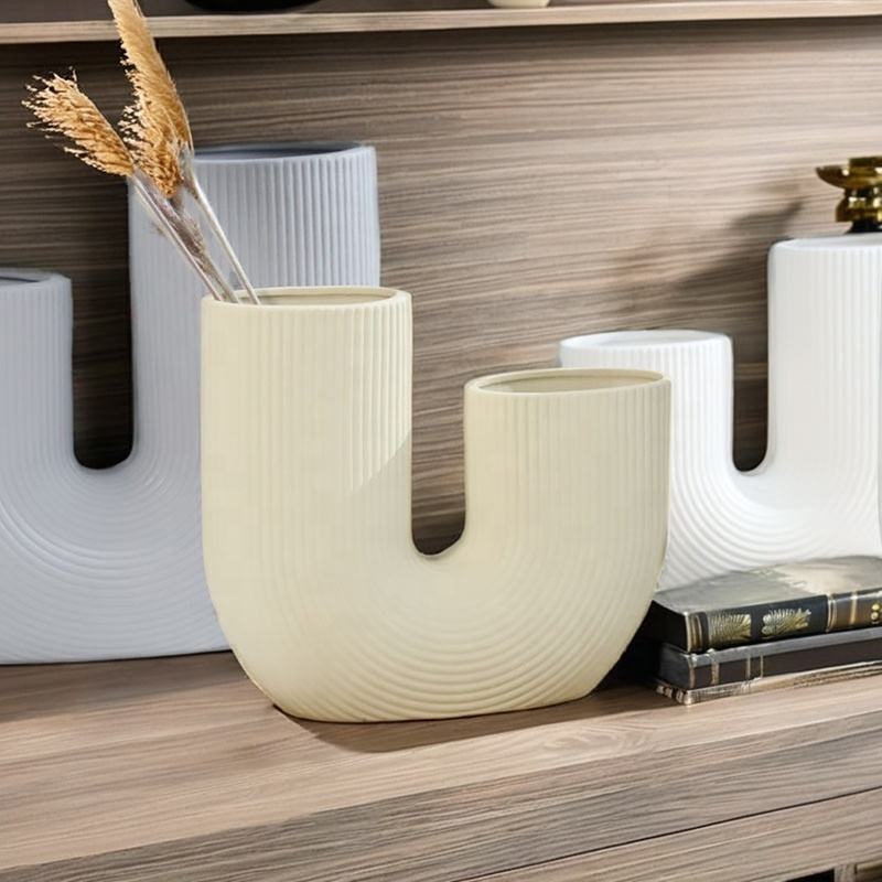 Nordic Modern Vase for Living Room Table Centrepiece Home Decor Minimalist Ceramic U Shaped Vase