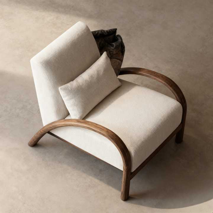 Elegant curved solid wood arm design, soft upholstered seat and back, luxury craftsmanship, removable cushion, ergonomic comfortfeature
