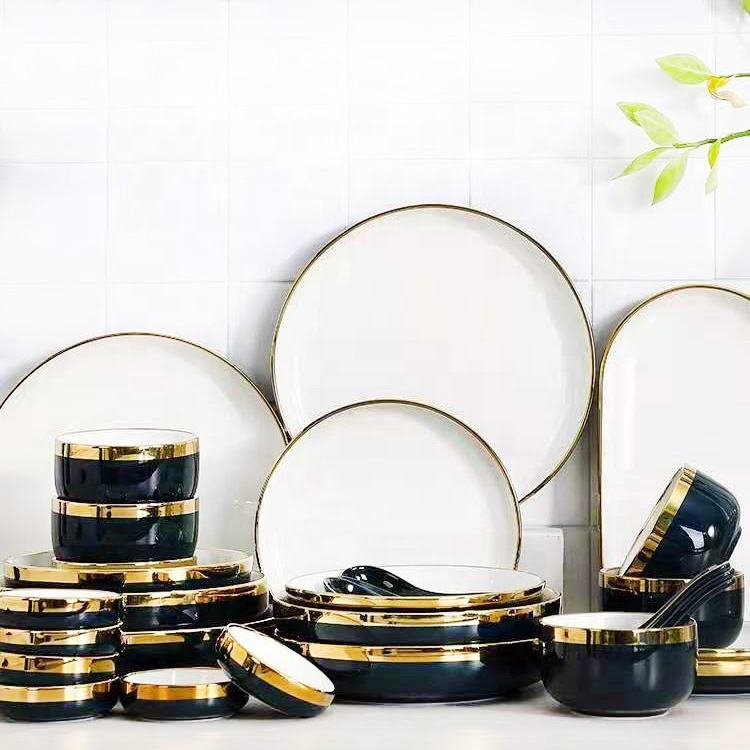 Nordic Navy Blue Black Eco-Friendly Ceramic Porcelain Dinner Plates Dinnerware Set