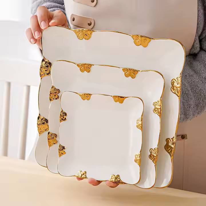 Nordic Phnom Penh High Quality Ceramic Plate for Breakfast Dinner Dessert Western Tableware Creative Pattern for Hotels Home Use