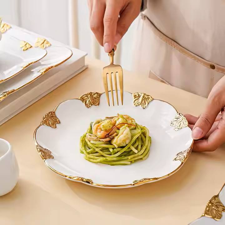 Nordic Phnom Penh High Quality Ceramic Plate for Breakfast Dinner Dessert Western Tableware Creative Pattern for Hotels Home Use