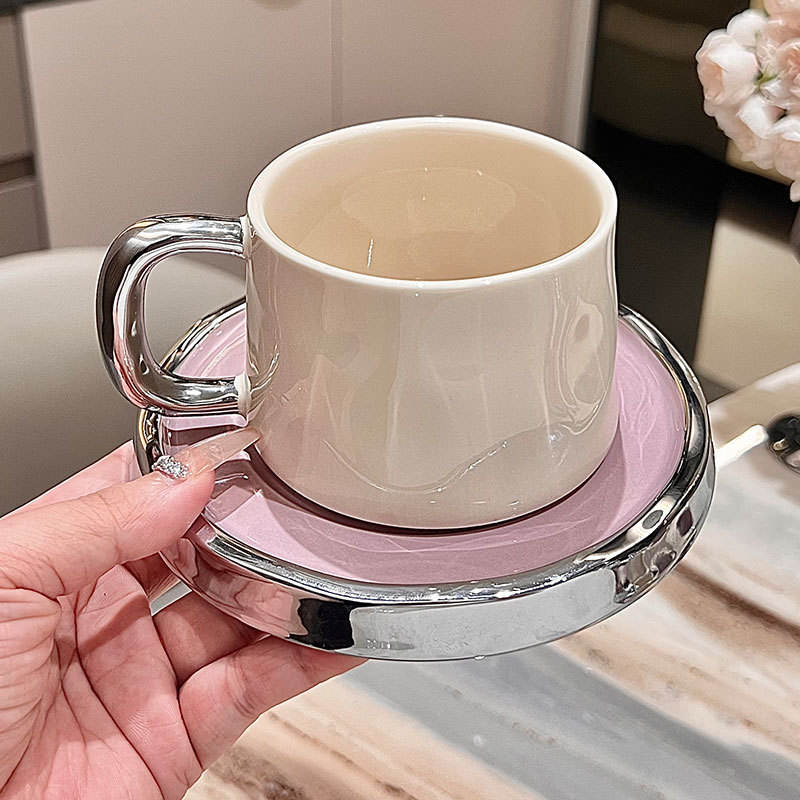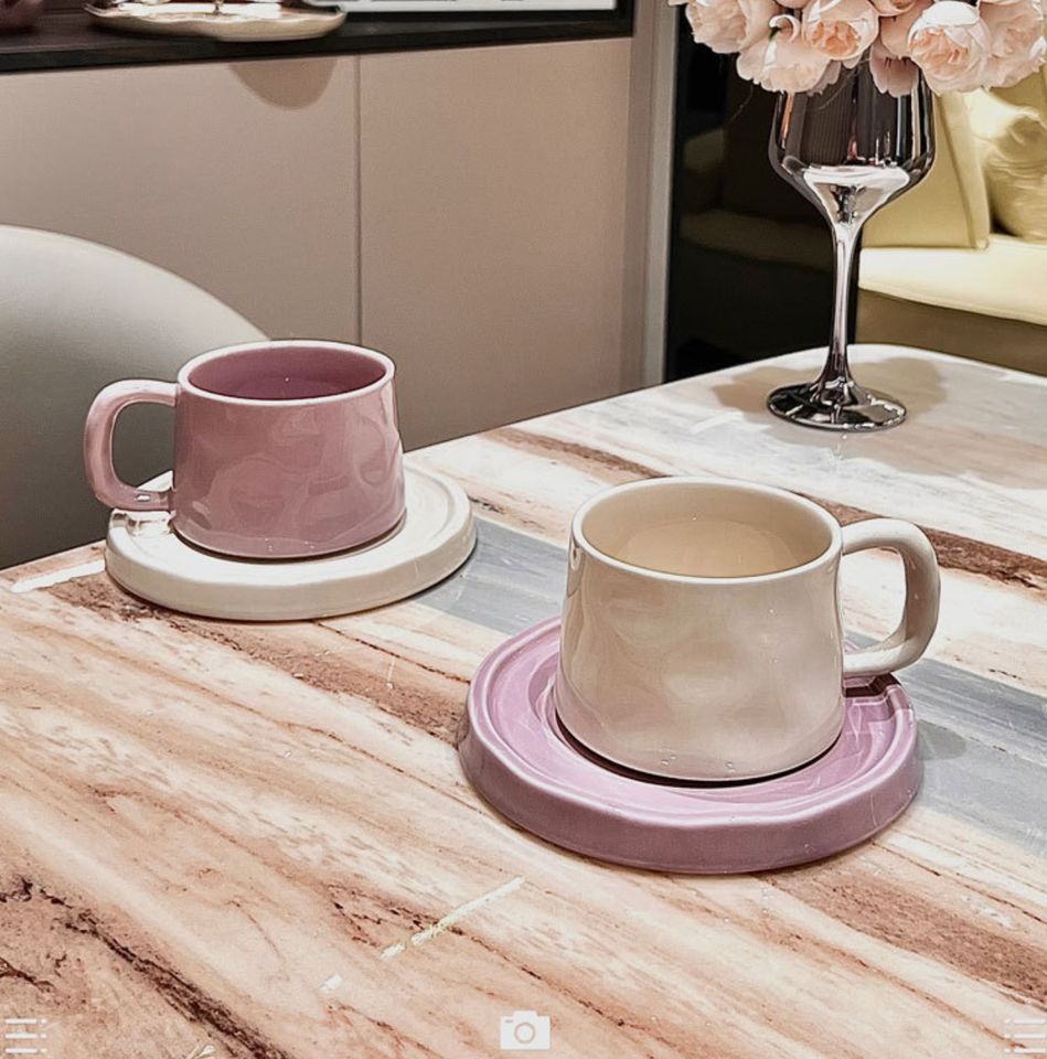 Nordic Pink Ceramic Coffee Cup Saucer Reusable Creative Home Decorative Cup Breakfast Drinking Latte Tea Cup Set