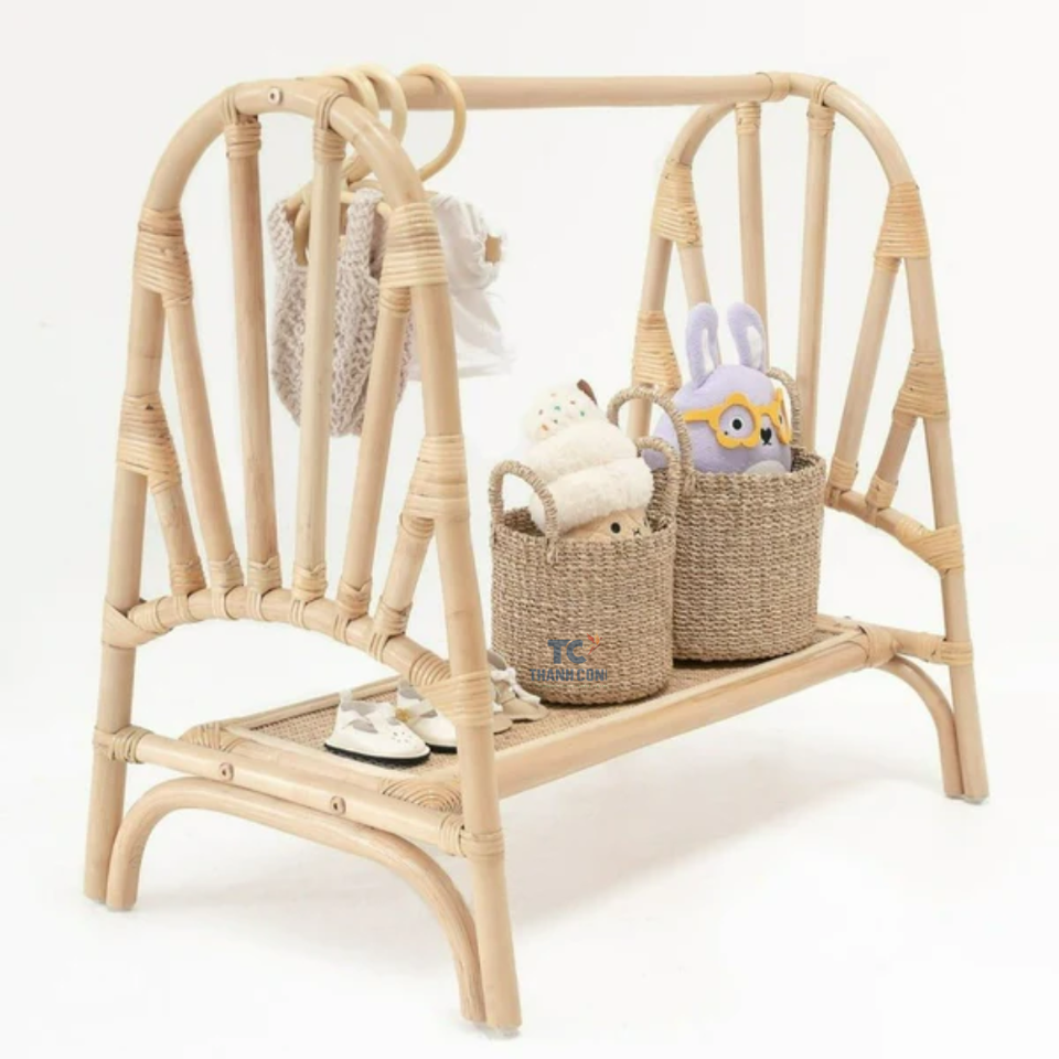 Nordic Rattan Floor Clothes Rack Simple Multifunctional Vertical Storage Rack for Living Room Household Storage Coat Rack