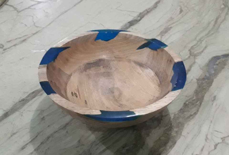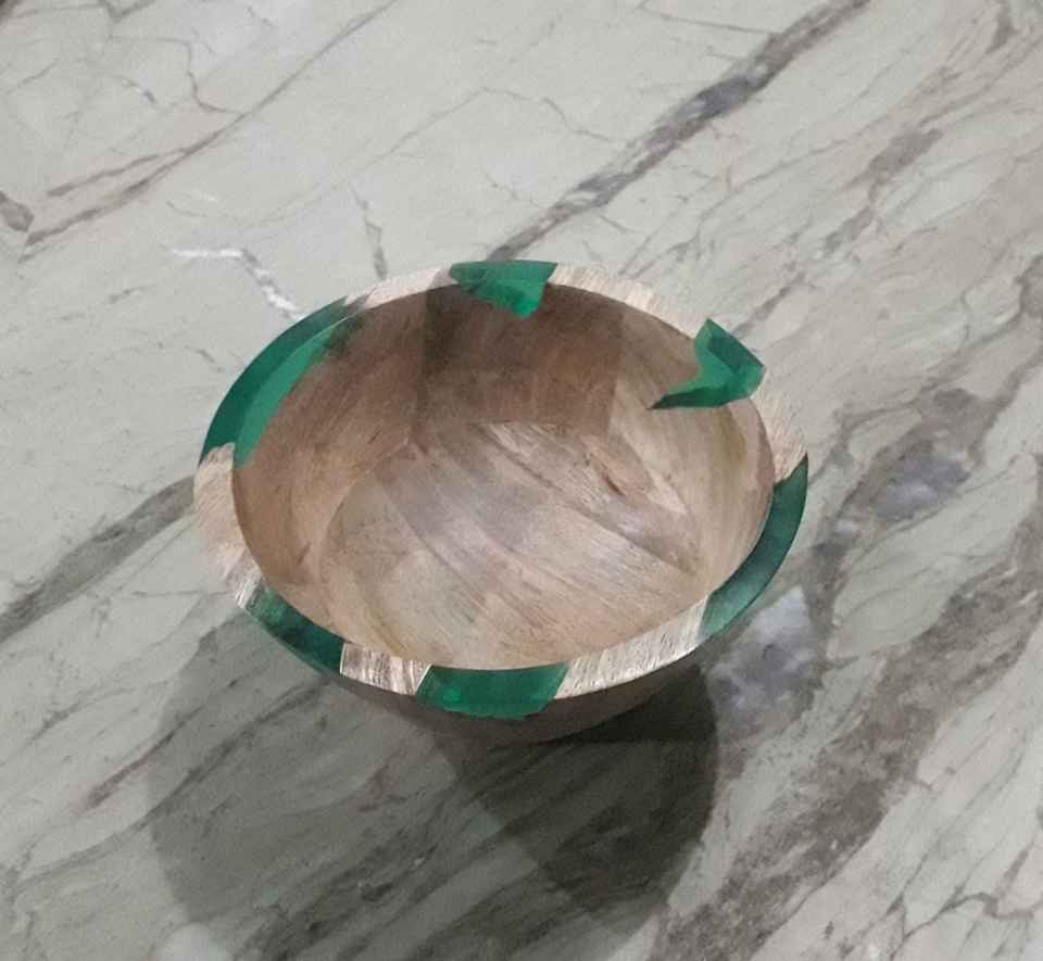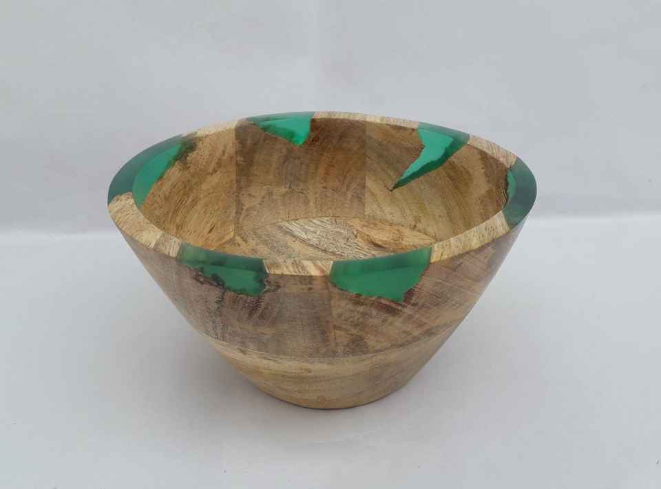 Nordic Round Wooden Round Bowl in Resin Combination for Fruit Salad Mixing Bowls and Rice/Soup Serving Bowls Christmas Gifts