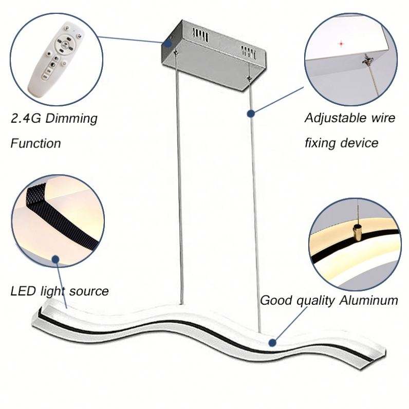 Nordic Simple Wave LED Ultra-Thin Chandelier Personalidad White for CRI 90 Restaurant Dining Table Living Room Residential