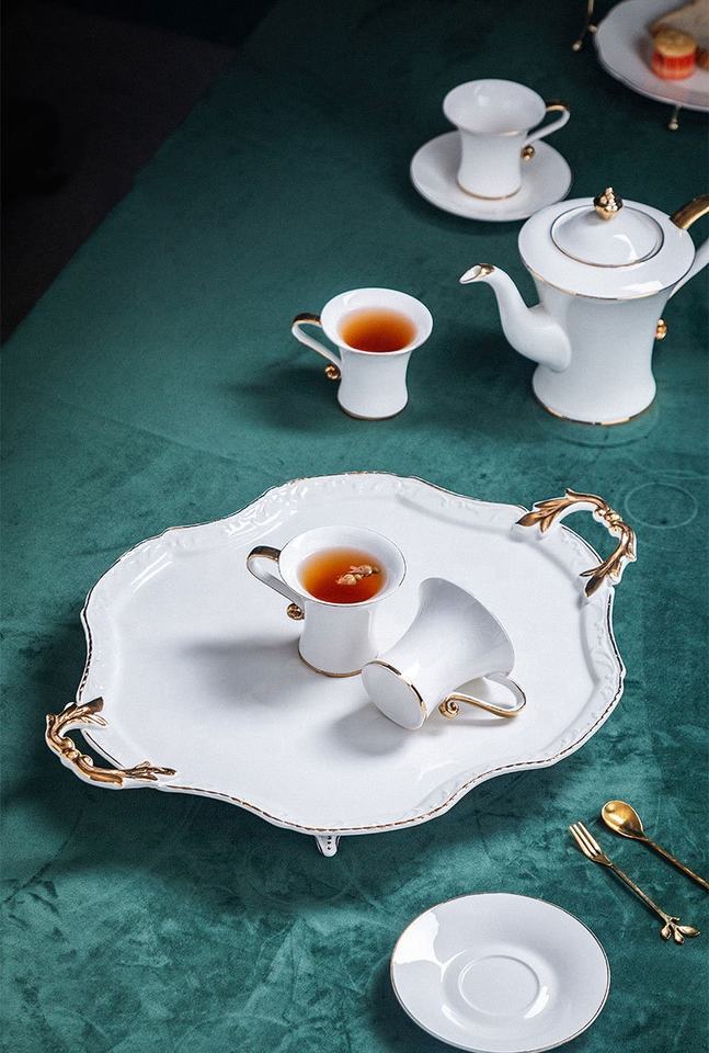 Nordic Simple White Vintage Eco-Friendly Porcelain Coffee Tea Set Hand-Painted Gold Bone China Wholesale Guangdong China for Tea