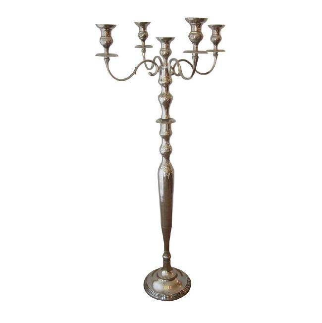 Nordic Style 5-Arm Silver Metal Aluminum Candle Holder Tall Crystal Candelabra for Wedding Table Centerpieces