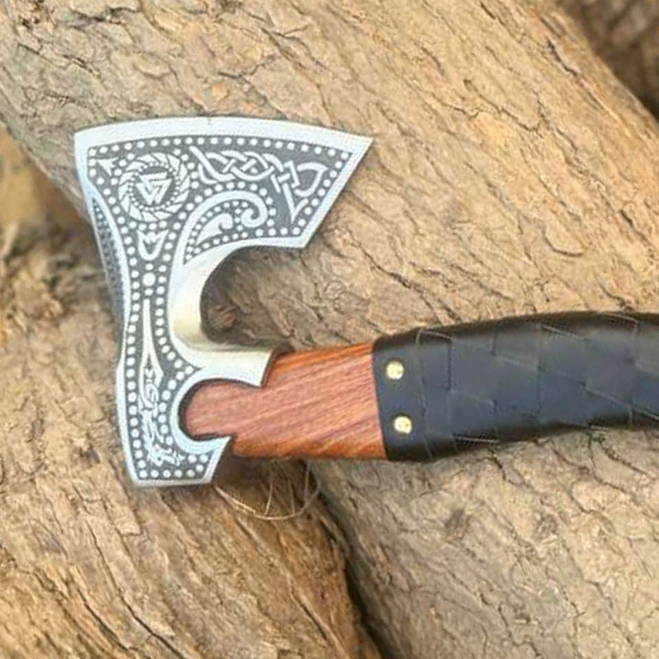 Nordic Style Axe Steel Head Engraved Design Wood Handle Industrial Camping Outdoor Bushcraft Tool Home Decor Collectible Gift