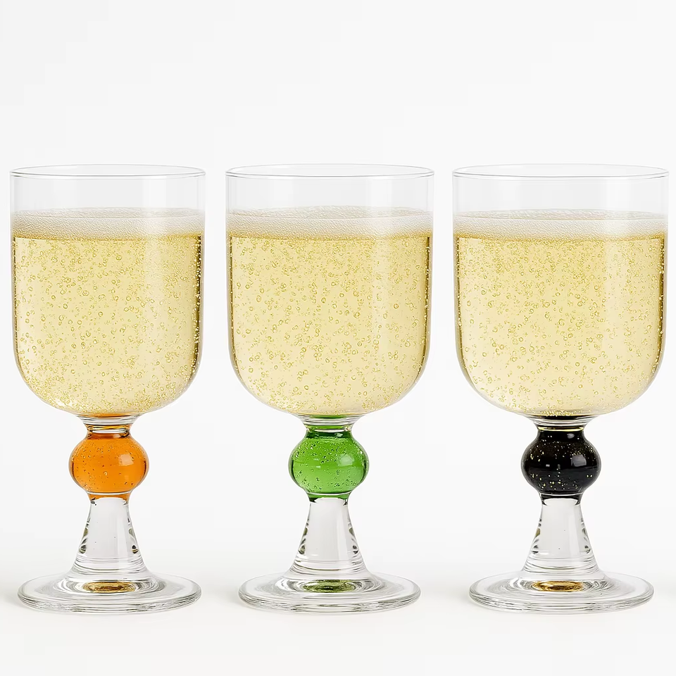 Nordic Style Beaded Stemmed Glass Goblet for Wine Champagne Cocktail