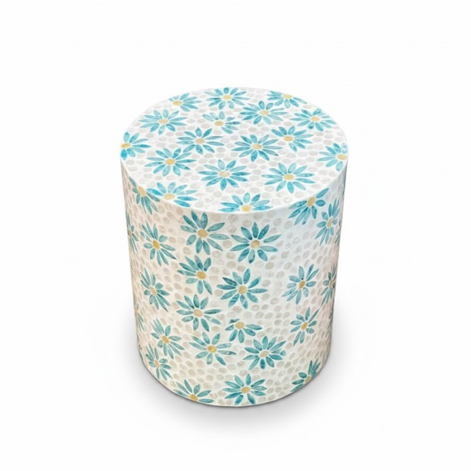 Nordic Style Blue Shell Inlay Round Coffee Table Luxury Mother of Pearl Inlaid Accent Table for Modern Living Room