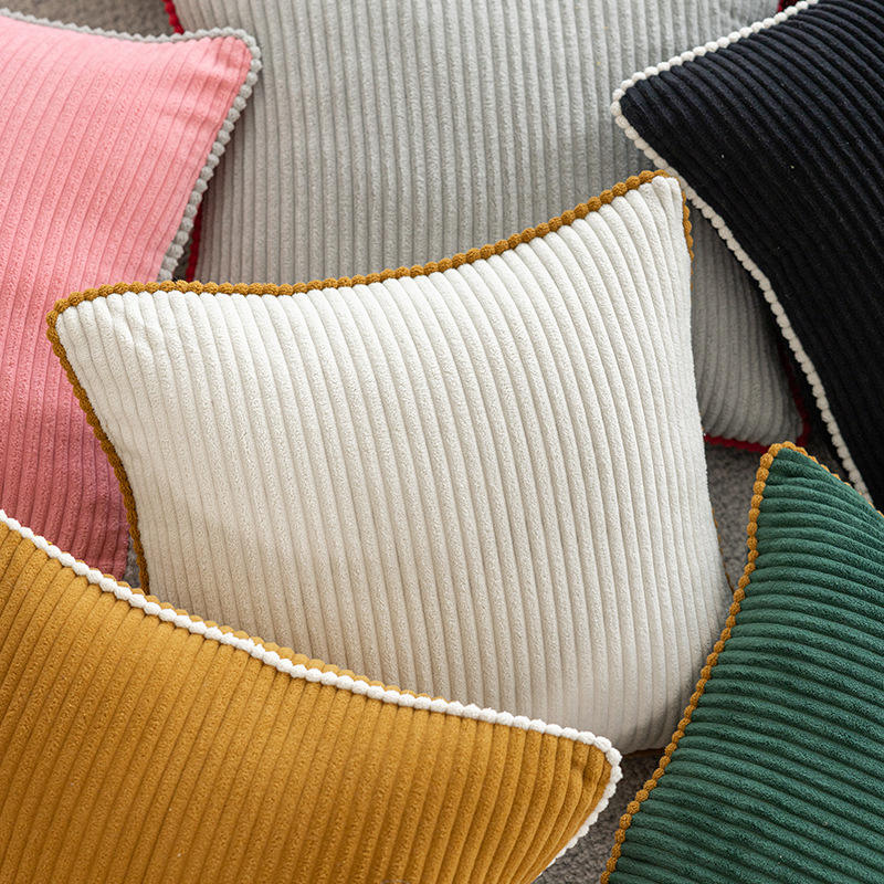 Nordic Style Corduroy Throw Pillowcase Square Solid Color Living Room Decor Modern Minimalist Design with Piping Edge
