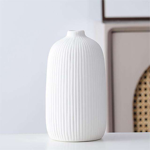 Nordic Style Creative Striped Small Ceramic Vase With Hydroponic Function for Living Room Dried Flower Display Decoration