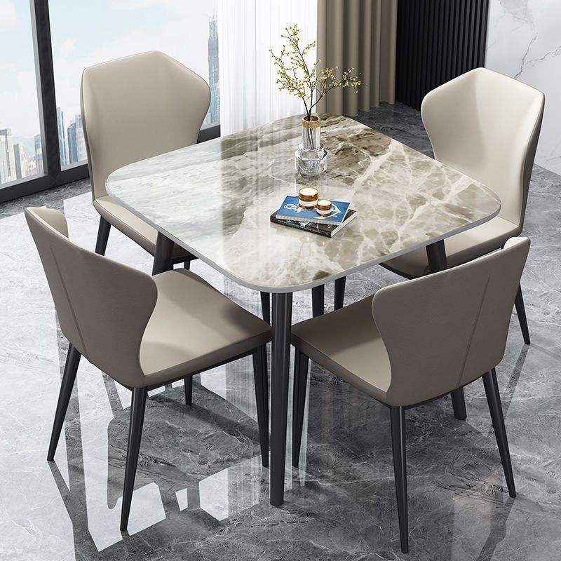 Nordic Style Dining Table Set 4 Piece Square Marble Top Space Saving Modern Dining Room Furniture