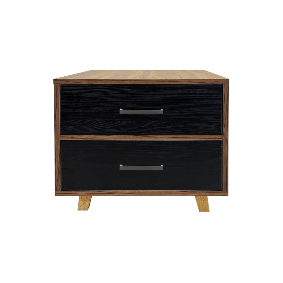 Nordic Style Durable Multifunction 2-Drawer Nightstand for Simple Bedroom Black Walnut Color Silver Handles Two-Tone Storage