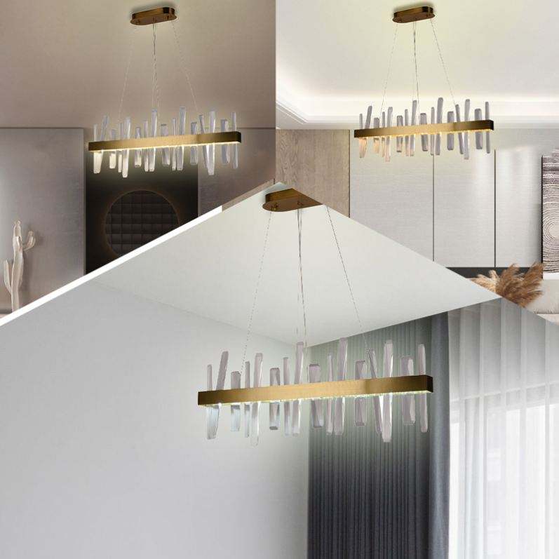 Nordic Style Gold Linear Crystal Pendant Ceiling Light Modern Luxury LED Chandelier with Remote Control