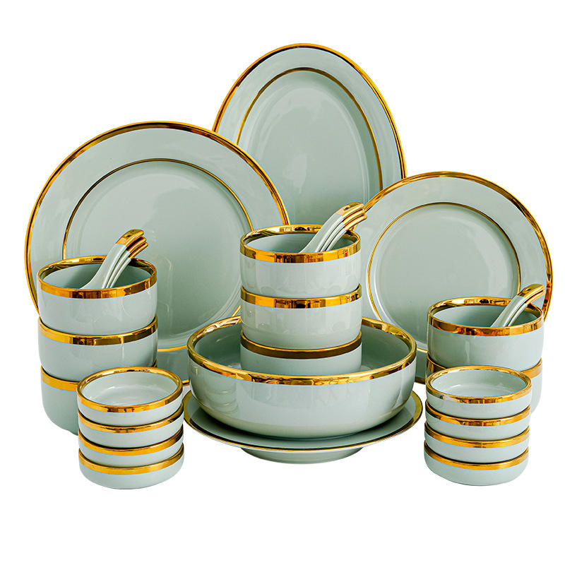 Nordic Style High-End Disposable Ceramic Tableware Set Luxury Home Use Bowls Plates Chopsticks Soup Bowls Dining Combination