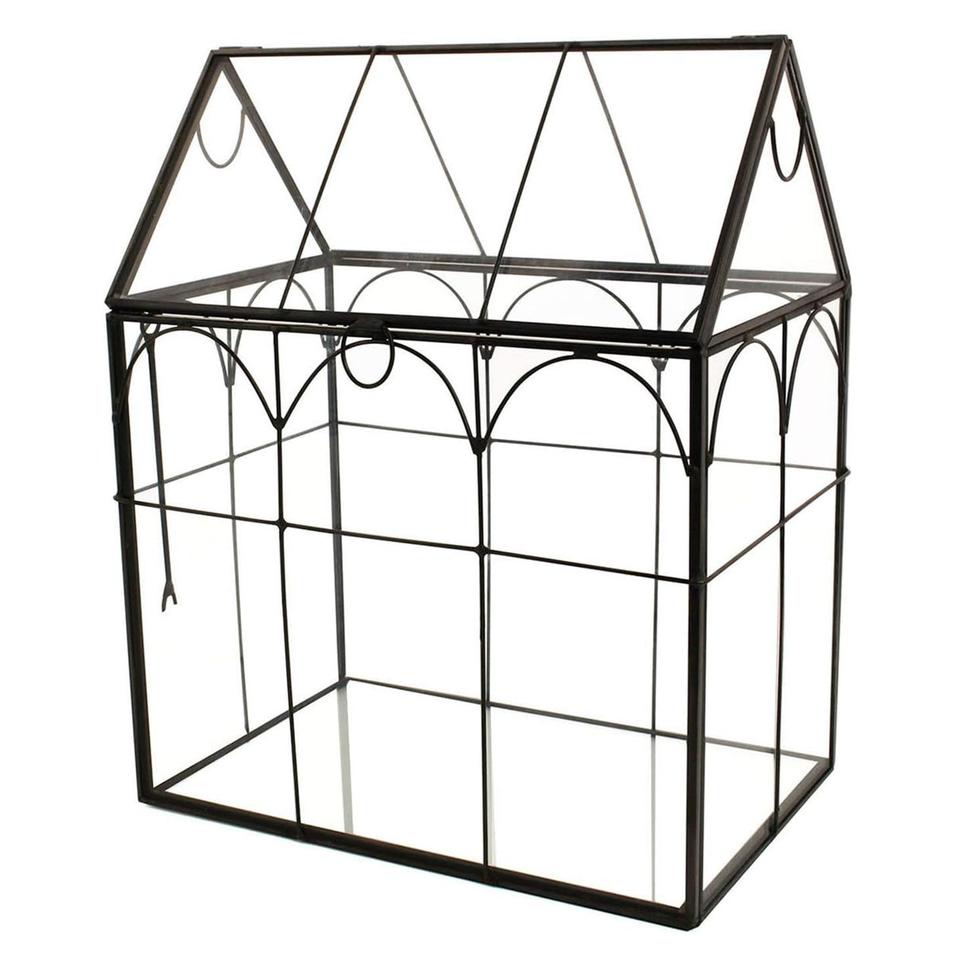 Nordic Style Hut Glass Terrarium with Black Frame, Hut Style Succulent Planter for Office Desk, Living Room & Event Decor