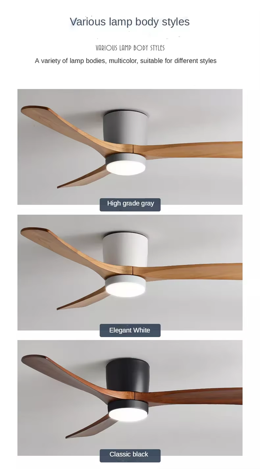 Nordic Style Minimalist Restaurant 3 Blades Solid Wood Ceiling Fan Lights
