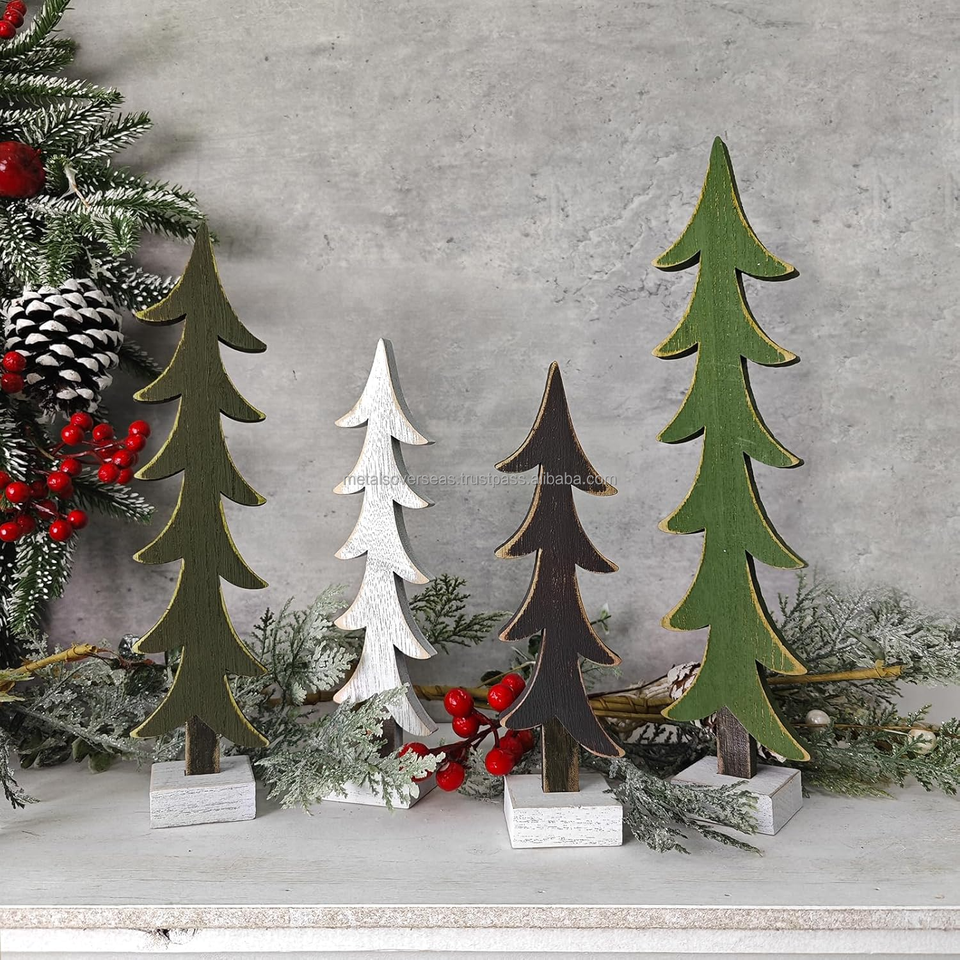 Nordic Style PE Wood Mini Christmas Tree Border Stock Desktop Wreath Chimes Christmas Decorations with Standing Base