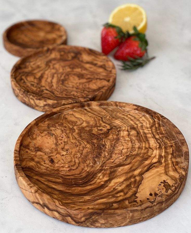 Nordic Style Plates 6 Inch Set of 4 Acacia Wooden Plates Round Tray Easy Cleaning Serving Platter for Food Dessert Salad Plate