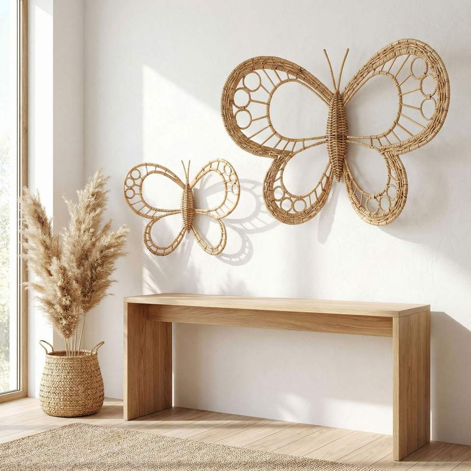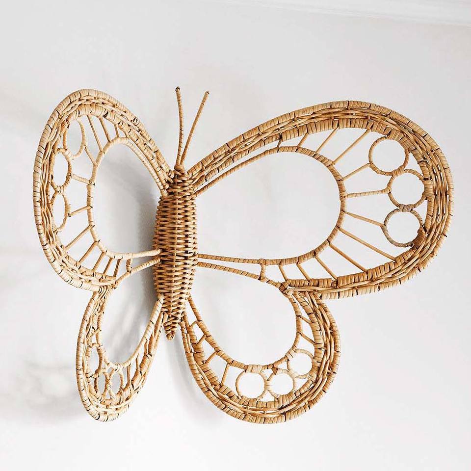 Nordic Style Rattan & Straw Butterfly Shaped Wall Hanging Decorations for Homestay Hotel Photography Props