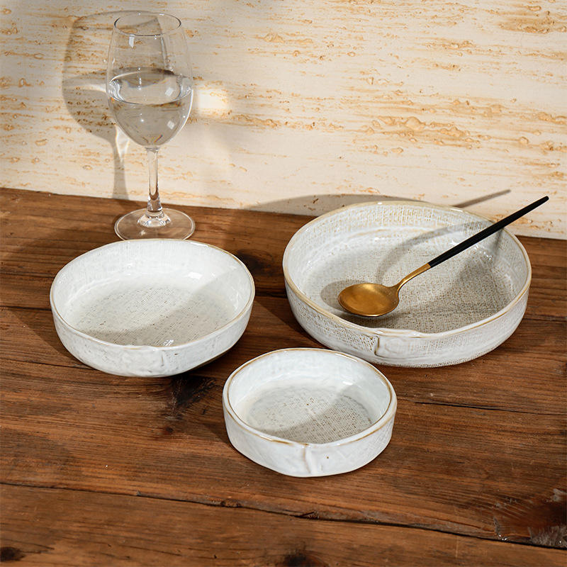 Nordic Style Simple Retro Gold Inlay Porcelain Dinnerware Sets Dishwasher Safe Tray Bowl Soup Bowl Rice Bowl