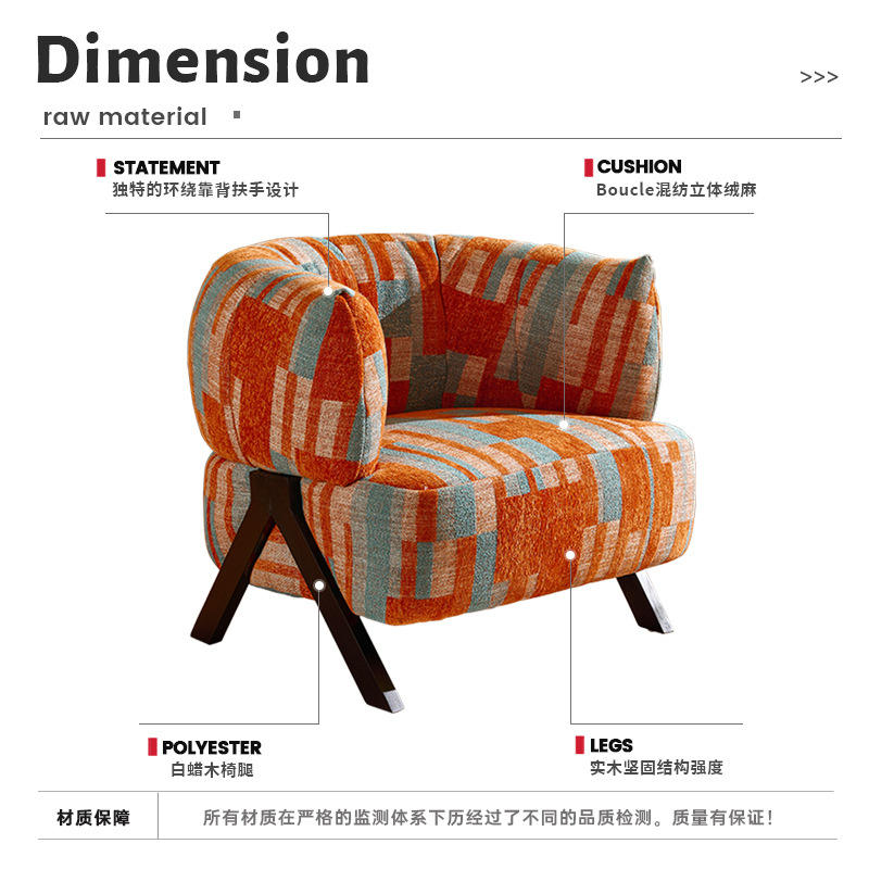 Nordic Style Single Sofa Chair Soft Fabric Retro Casual Living Room Furniture For Bedroom Balcony Small Apartment