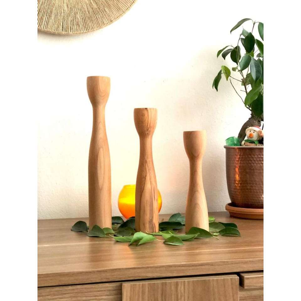 Nordic Style Wood Pillars Candlestick Stand Decorative Candle Holder Set of 3 Christmas Home Decoration Supplies Cheap Price