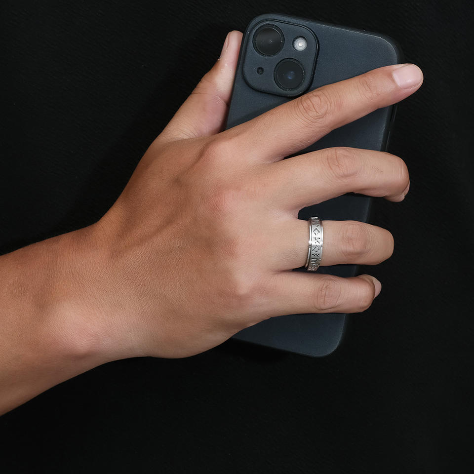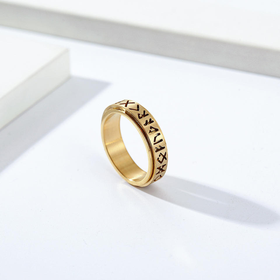 Nordic Viking Script Rotating Ring Titanium Steel Unisex Jewelry Gift Letter Pattern Alphanumeric Script K-R722