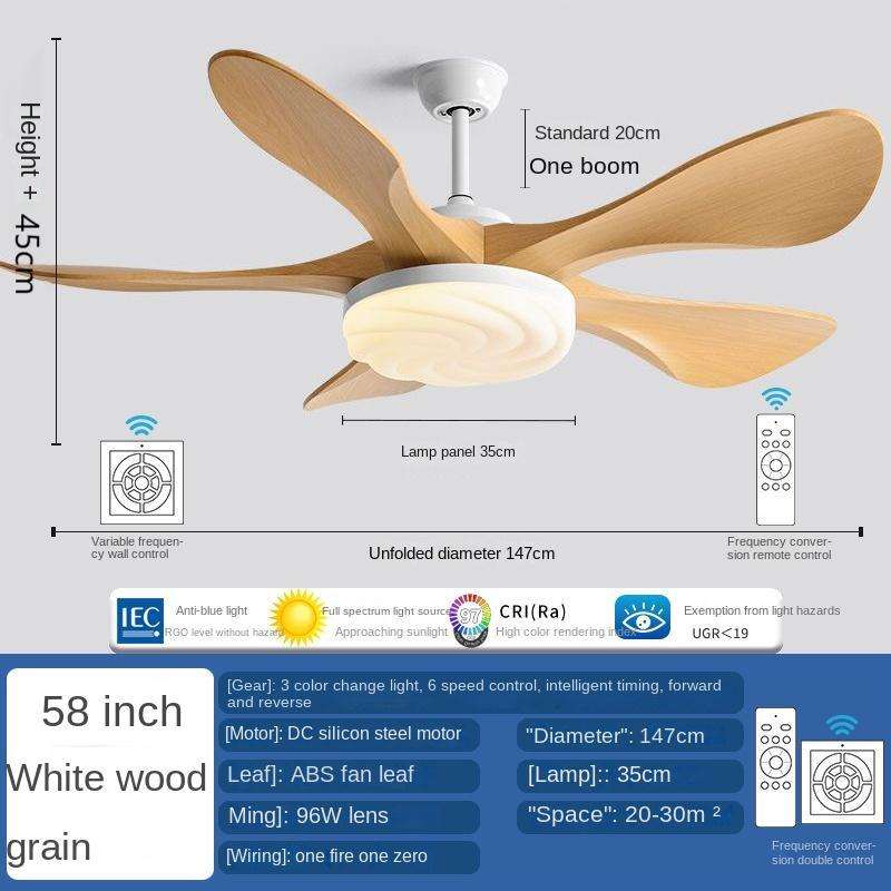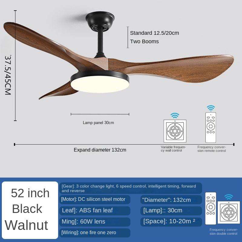 Nordic Vintage LED Ceiling Fan Light Intelligent Inverter Hanging for Home Dining & Living Room Atmospheric Electric Chandelier