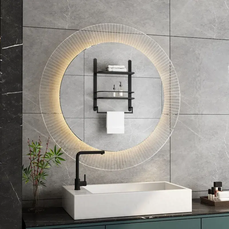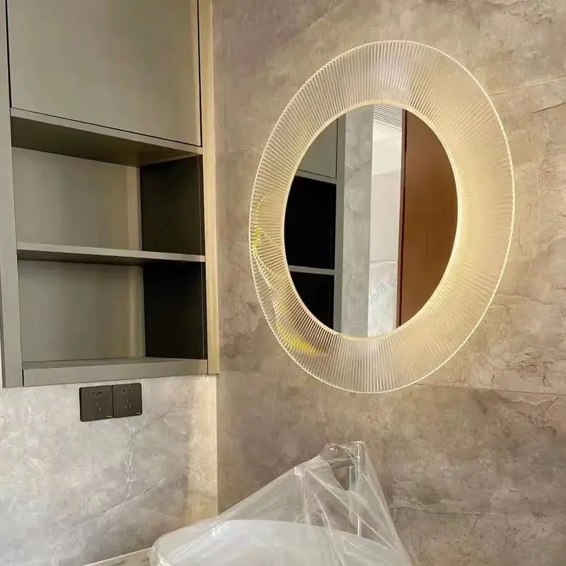 Nordic Wall-mounted Bath Mirrors Light Luxury Round Smart Mirror With Touch Screen Personality Led Makeup Vanity Mirror
