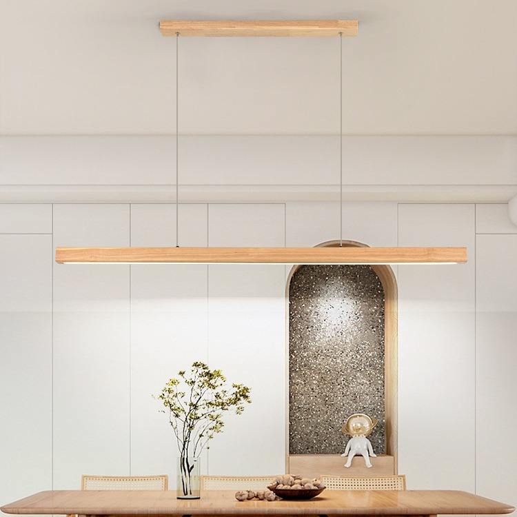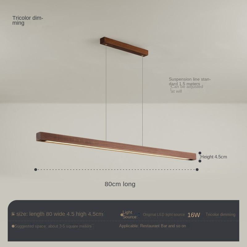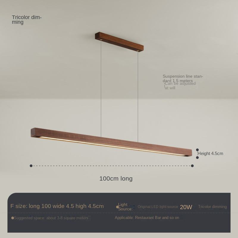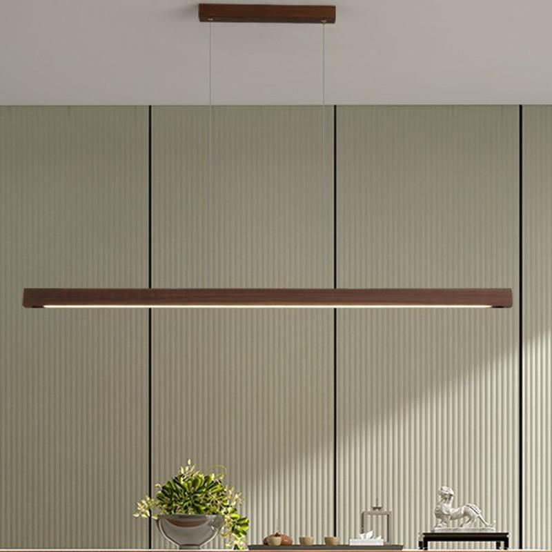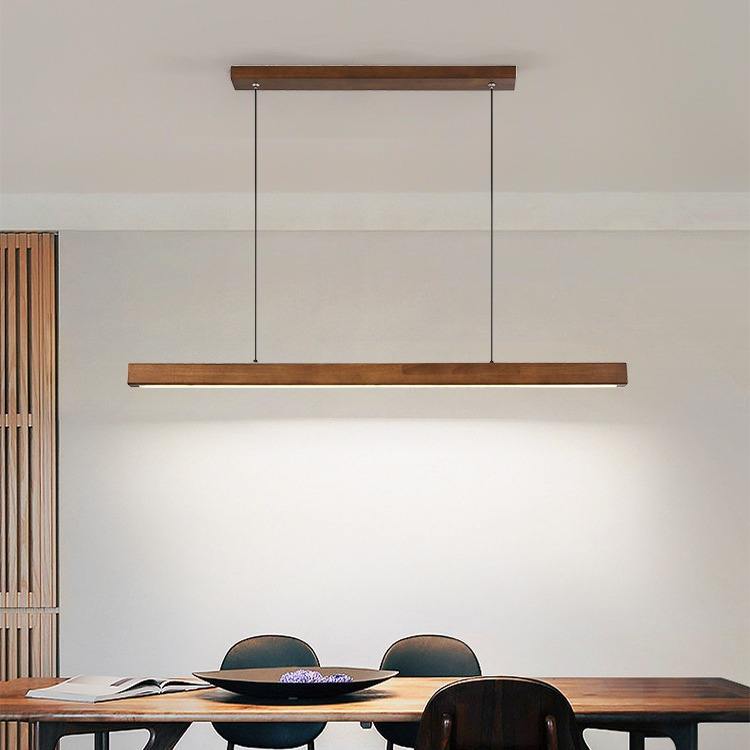 Nordic Walnut Solid Wood LED Chandelier Modern Long Lamp for Restaurant Tea Table Study Office Adjustable Height for Rectangle