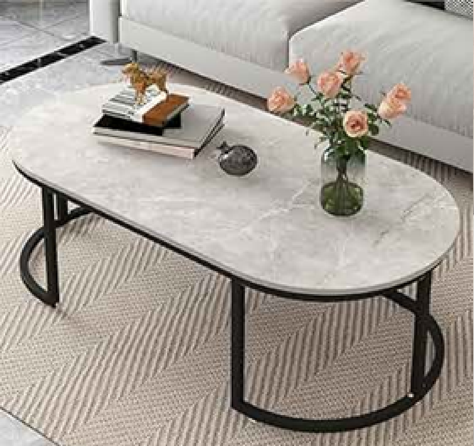 Nordic style , metal coffee table oval white marble top and a black metal base, metal coffee table for Living Room at wholesale
