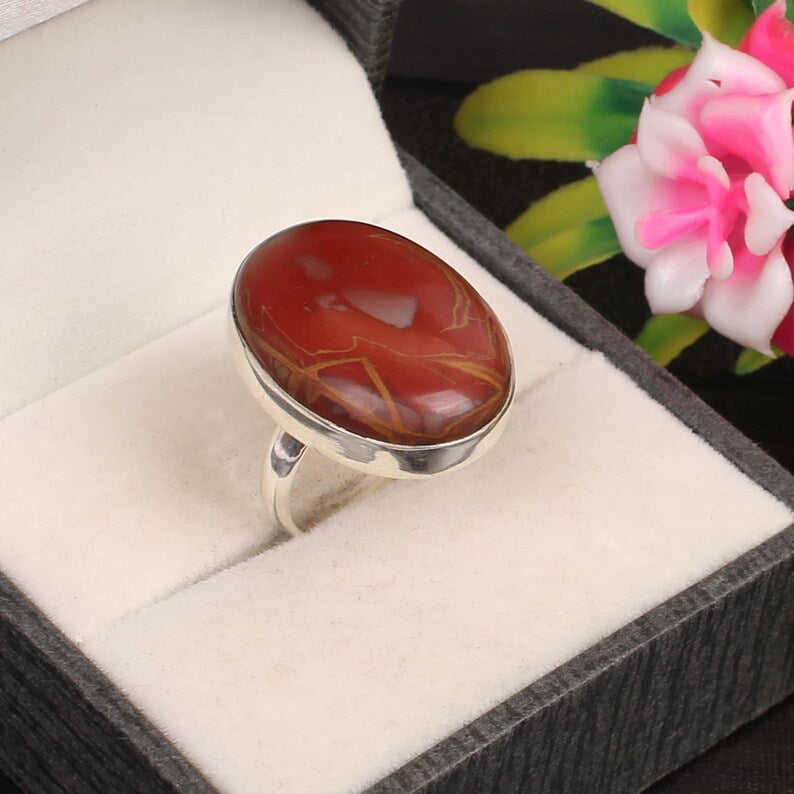Noreena 92.5 Sterling Silver Fine Ring Natural Jasper Gemstone Oval Cut Dainty Statement Hip Hop Style IGI Certified
