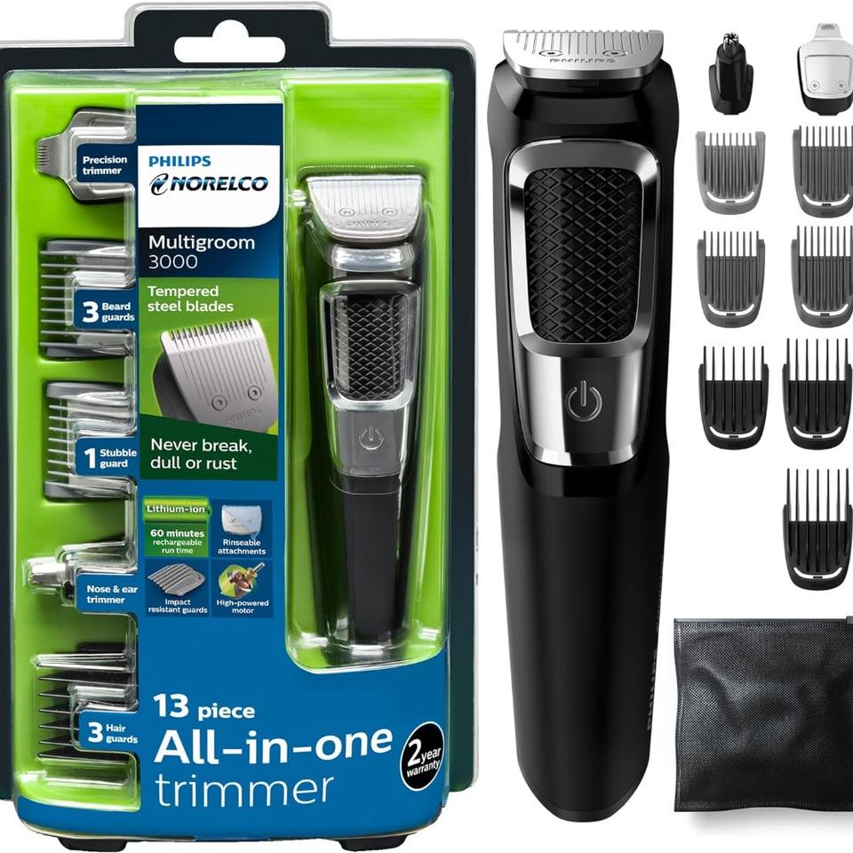 Norelco Philips Multi Groomer All-In-One Trimmer Series 3000-13 Piece Mens Grooming Kit For Beard, Face Nose, Ear Hair Mg3740/40