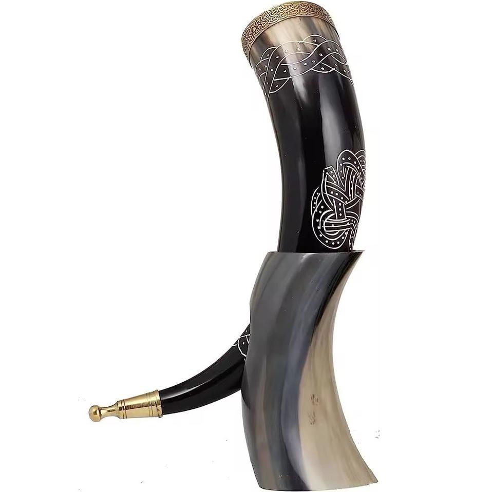 Norse Viking Drinking Horn with Stand Handmade Horn Mug for Mead Ale & BeerNatural and Organic Products
