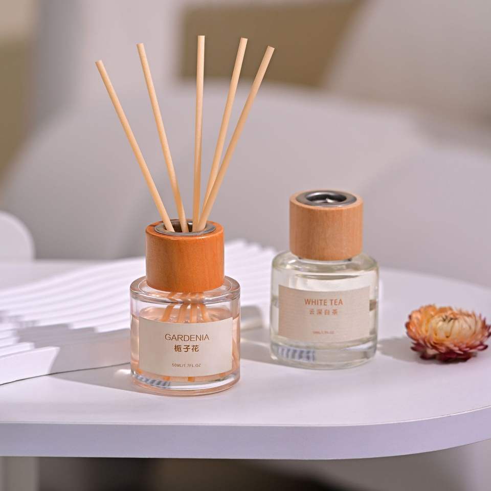 Northern Mu Reed Diffuser 50ml Wooden Cap Gardenia White Tea Fragrance Home Indoor Air Freshener