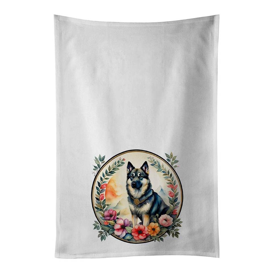 Norwegian Elkhound Flowers Decorative Kitchen Towel Set 2 White Dish Towels 1 Hand Face Hair Yoga Tea Dishcloth 19\"x 28\" Towel
