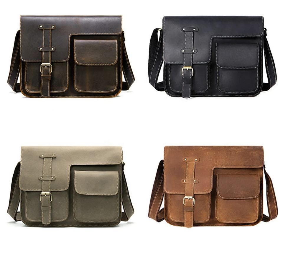 Laptop Sling Bag Briefcase Crazy Horse Genuine Leather Vintage Messenger Men Women LPG-0067B
