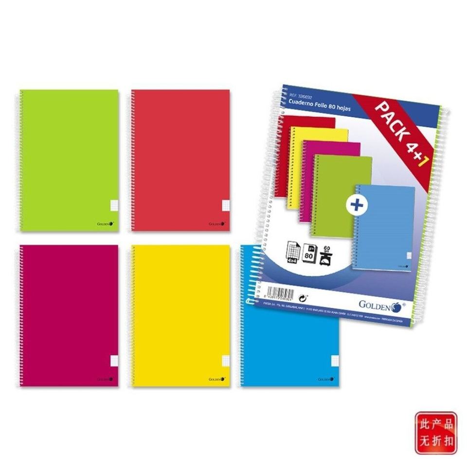 Notebook pack 4+1 A4 80 pages 60gr squared 4x4