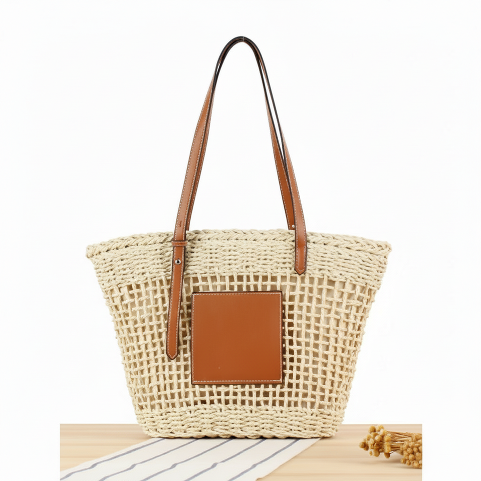 Nova Bolsa de Cesta de Corda Arco-iris Fofa e ModernaBolsa Tote Feminina de Algodao TrancadoBolsa de Palha Croche para Praia no