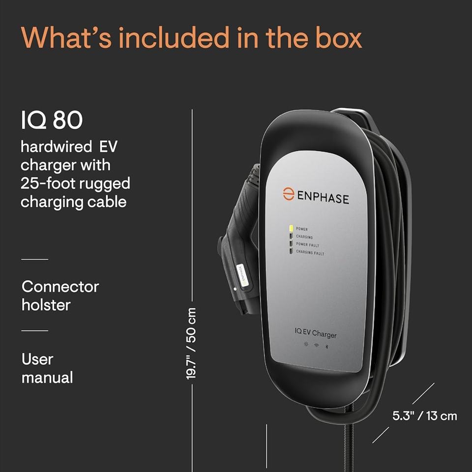 Now Available IQ80 Hardwired 64Amps E-Car Charger Safety Certified with 25ft Cable and Rugged J1772 Connector